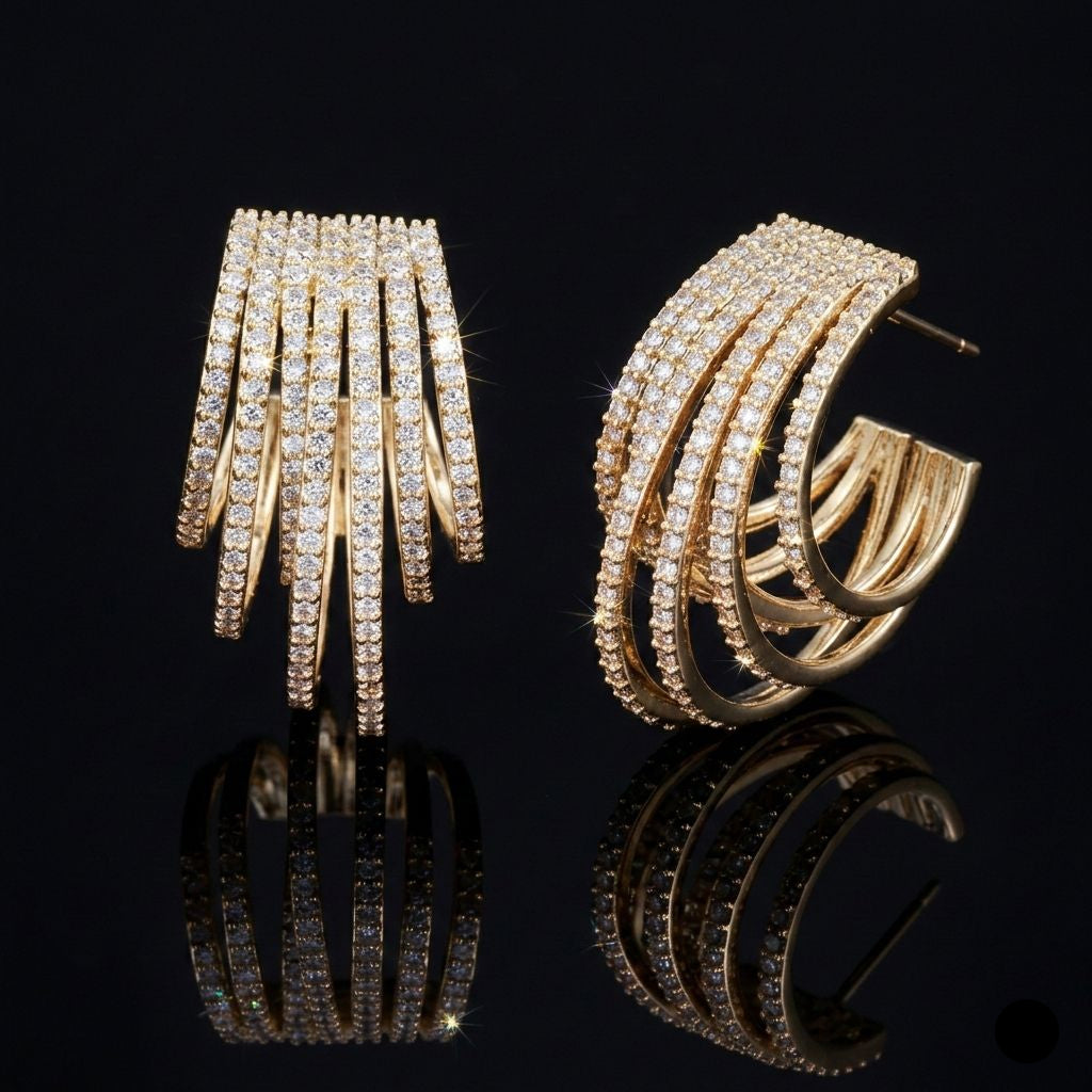 Trendy hoop earrings featuring a geometric half-round design with micro pave zircona stones