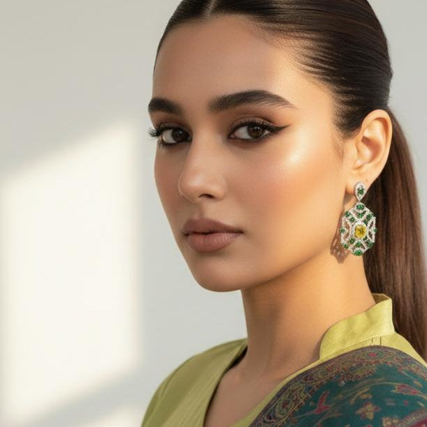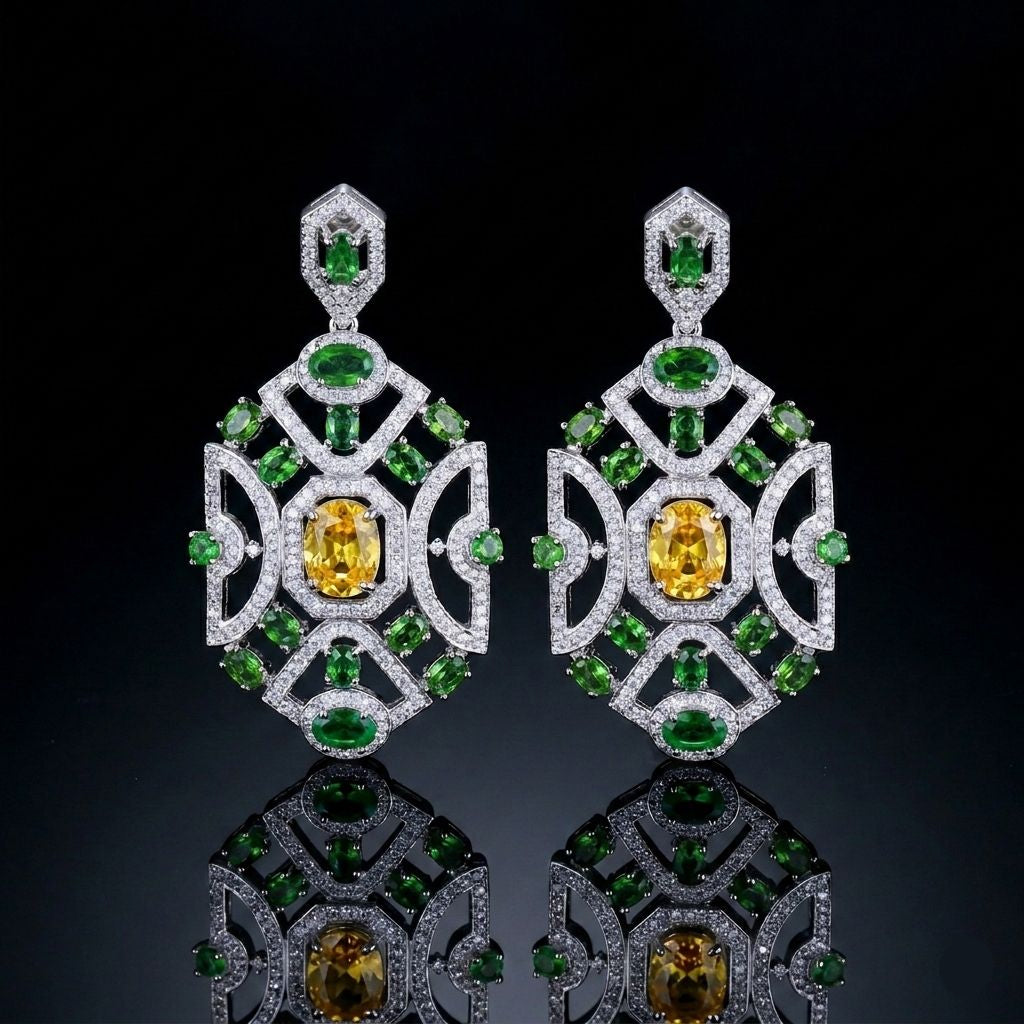 Emerald and Citrine Cubic Zirconia Drop Earrings