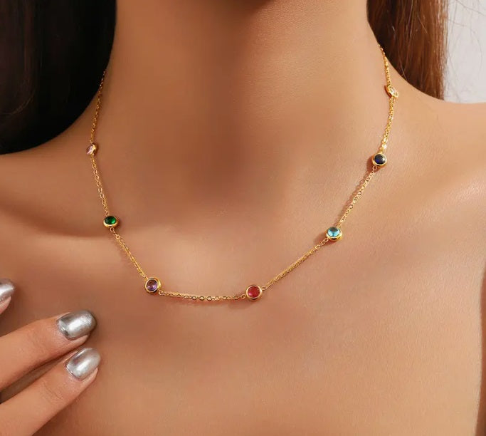 Dainty Necklace with Colored Stones