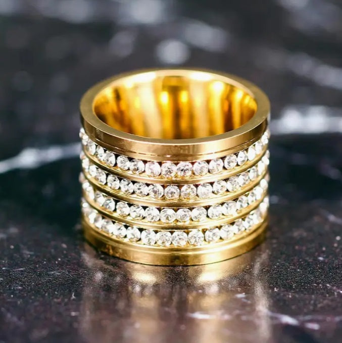 Multiband Gold Ring with Zircona