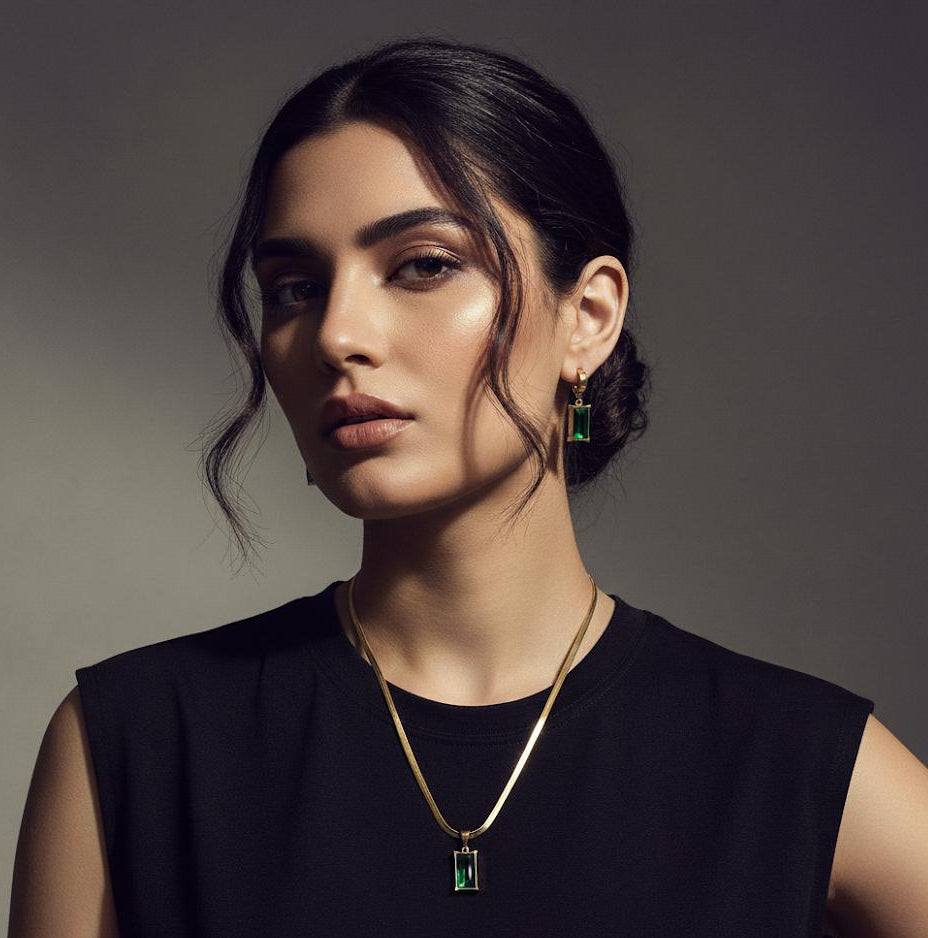Snake Finish Chain with Pendant and Earrings
